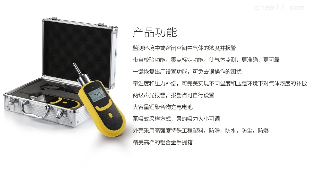 | 采樣方式: | 泵吸式,流量可達1L/min,泵的吸力大小有十個檔位可調 | |
